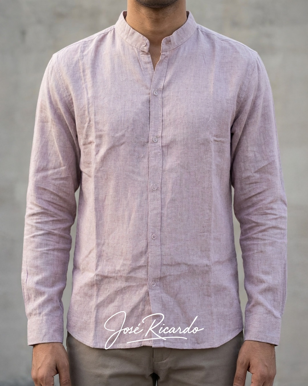Camisa lino rosado cuello Mao